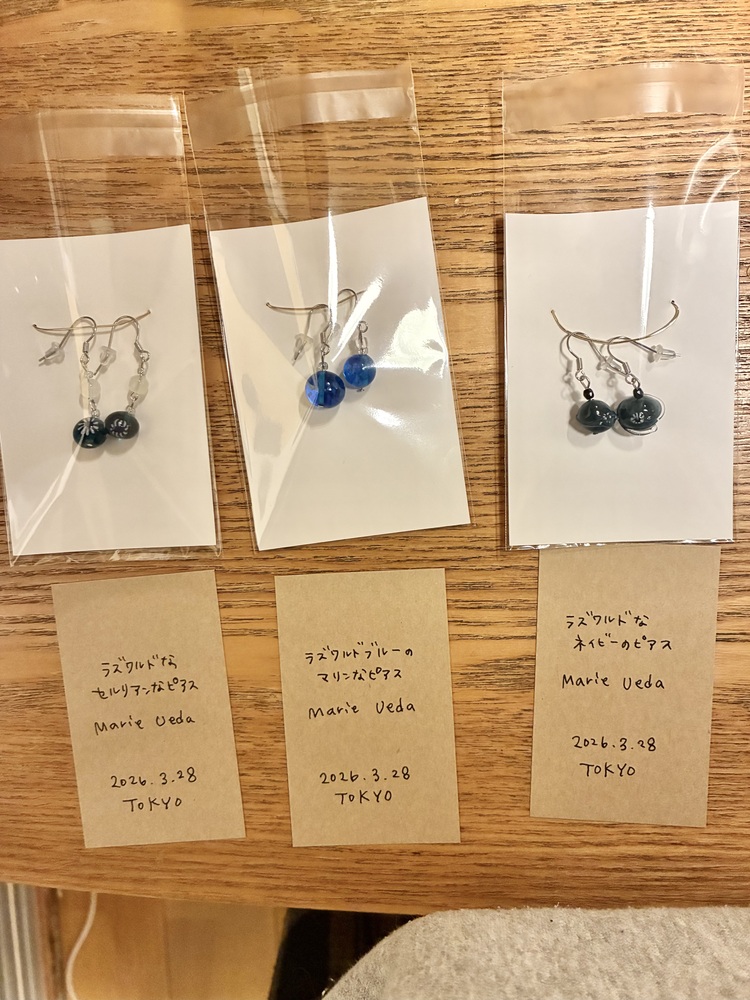 ラズワルドのブルーカラーでとんぼ玉作るのは初めてでした。いろいろ混ぜるのもよかったけど、実は真っ青一色もそうとういいなと思ったので、混ぜてないものも。透明感のある青は青一色なのがいちばん神秘的じゃあないか。そう思った。